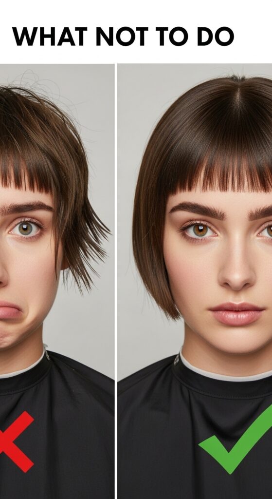 A few pitfalls can make this fringe feel dated. First, avoid cutting it too short. It should at least graze your eyebrows or be longer. Second, don’t let it get too wide—it should frame, not cover, your entire face.