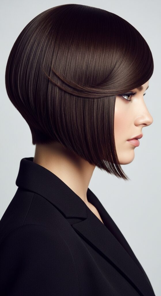 This isn’t a one-length-across chop. A skilled stylist will cut it dry or mostly dry to see how your hair naturally falls. They’ll create a heavy, triangular section from the crown down.