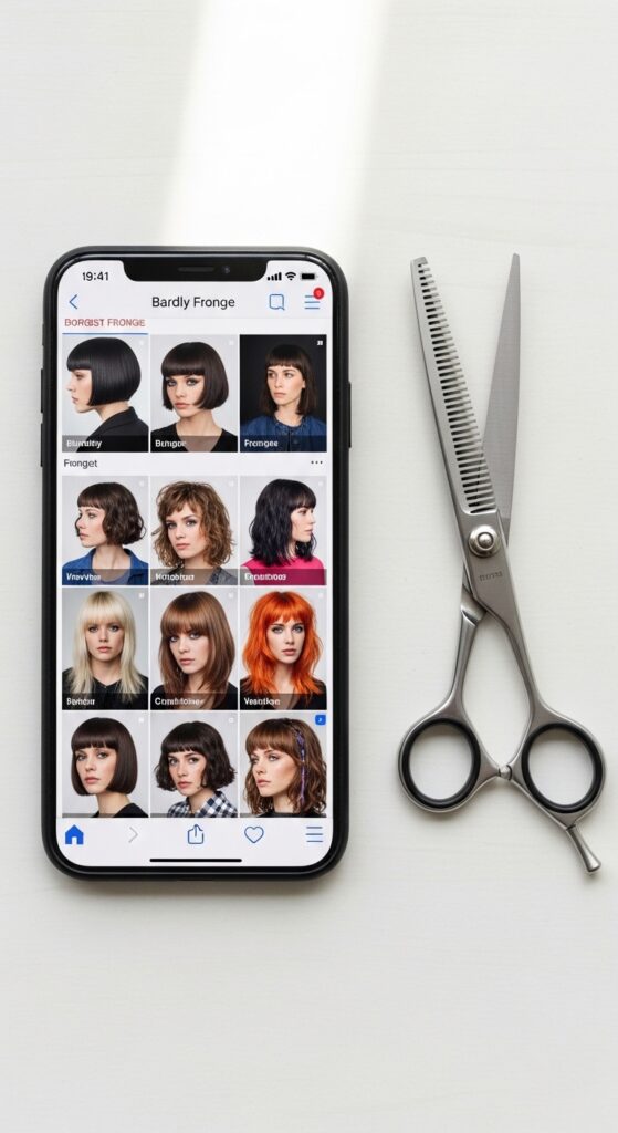 Communication is key for a cut this specific. Don’t just say “curtain bangs.” Show a photo! Use the keywords we’re talking about: “boldly curtained fringe,” “dramatic center-part bangs,” or “heavy face-framing layers.”