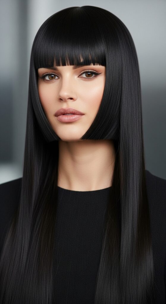 The boldly curtained fringe is a natural, modern evolution of the hime’s classic front pieces. It keeps that graphic, bold line but with a softer, more wearable separation. It’s a truly artistic choice.