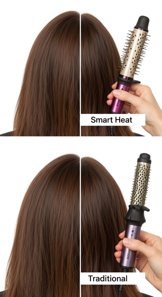 Traditional tools blast a consistent temperature. If your hair is slightly thinner in one section, it gets the same high heat as your thicker hair. This uneven application is where the most hidden damage occurs. Smart tools aim to stop that on the spot.