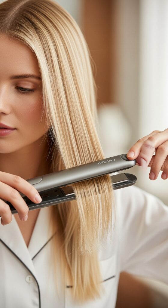 This means you can get smooth, sleek styles without the fear of snapping your strands. It’s perfect for maintaining that soft, old money hair vibe—all about health and shine, not extreme heat.