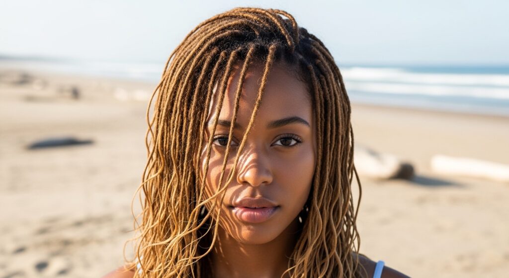This style adds incredible movement and light to your hair. It’s a sun-kissed look that feels both expensive and effortlessly cool, like the best kind of quiet luxury bob but in loc form.