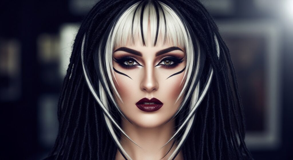 It creates a striking, mysterious effect that highlights your features. It’s edgy, modern, and gives a serious nod to current alt-fashion trends.