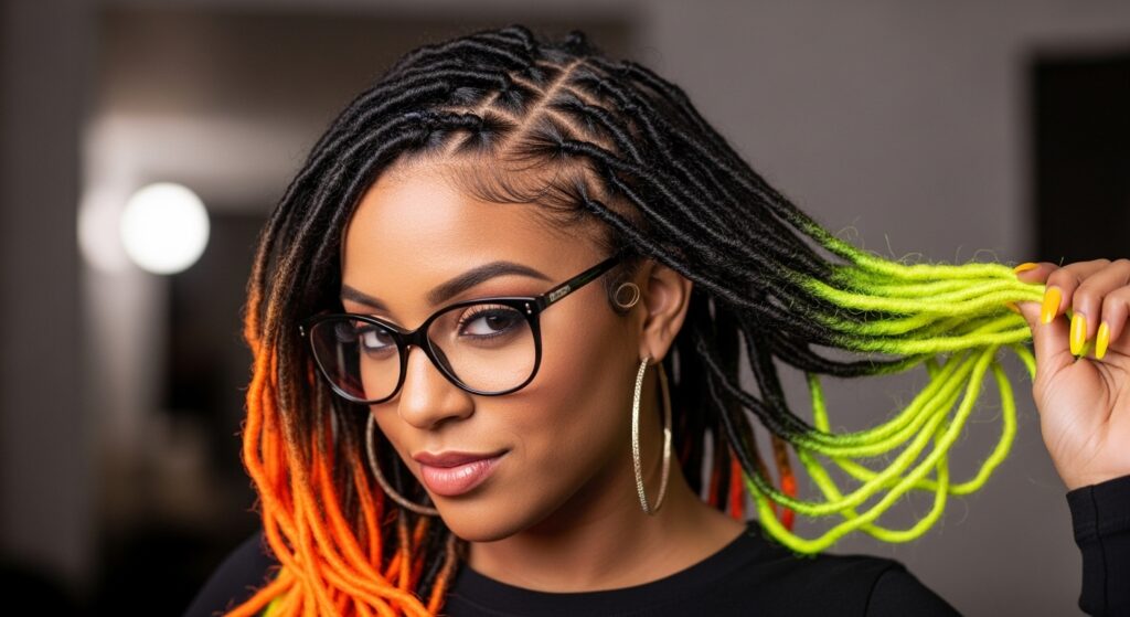 If full-on color feels like too much, just dip the tips! Dark locs with neon tips are playful, edgy, and easy to change up later.