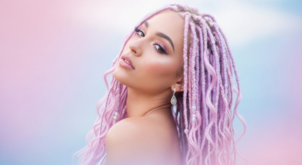 Ready for a fairy-tale moment? Pastel goddess locs are pure fantasy. Soft pinks, lavenders, and baby blues turn your hair into a dreamy cloud of color.