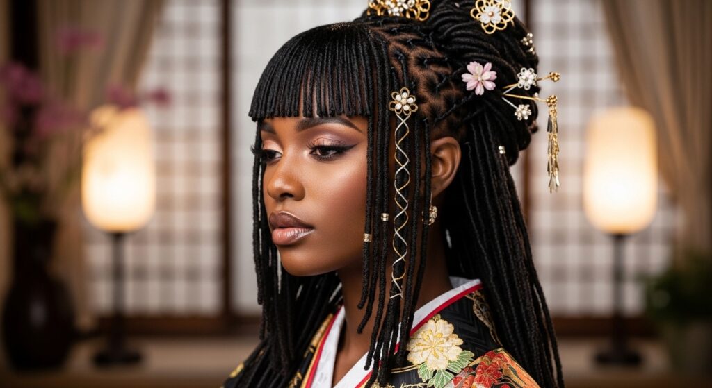It’s a beautiful fusion of Japanese tradition and protective style. The result is uniquely elegant, structured, and deeply romantic.