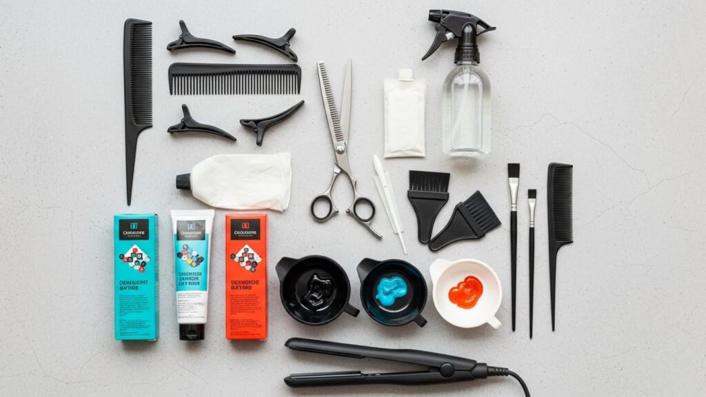 Preparation is crucial for a precise cut like this. Gather your tools first. You will need: sharp hairdressing shears (never use dull craft scissors), fine-tooth comb, hair clips for sectioning, a spray bottle with water, and a hand mirror to check the back. If you are including the color transformation, you will also need your chosen hair dyes, developer, mixing bowls, brushes, applicator bottles, gloves, and foil or plastic wrap. For styling, have a flat iron and a strong hold hairspray or texture spray on hand.