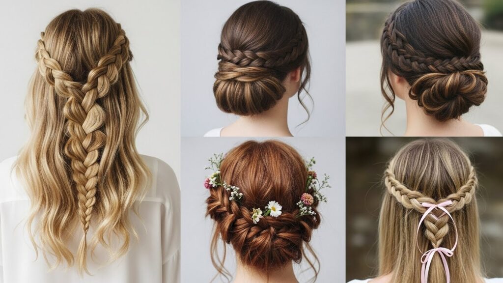 Ladder Braid into an Updo: Use a ladder braid as a dazzling headband, then twist the remaining hair into a low bun or chignon at the nape of your neck. Secure the tail end of the braid into the updo.