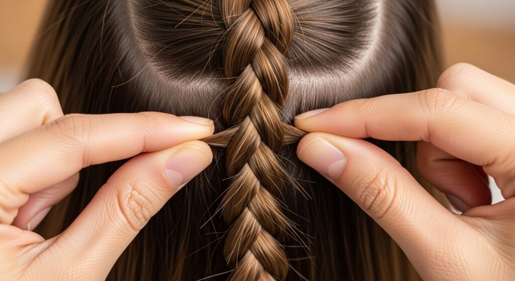 After gentle teasing, don’t smooth the top layer completely. Leave a bit of texture. Use your fingers to gently pull and shape the volume, creating a softer, more undone silhouette.