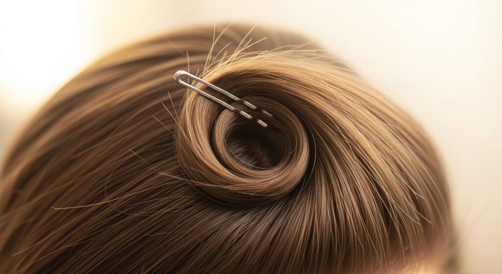 This creates a tiny, secure knot of volume at the base that is completely hidden by the top layer of smooth hair.