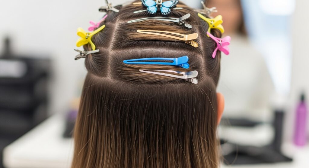 - Section hair. Start at the bottom crown layer.