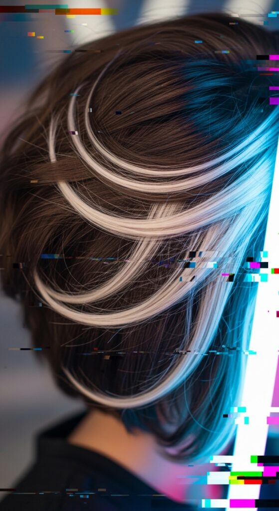 By having that smooth base, the “glitched” pieces—whether they’re face-framing layers or curled sections—pop even more. It’s controlled chaos at its most beautiful.