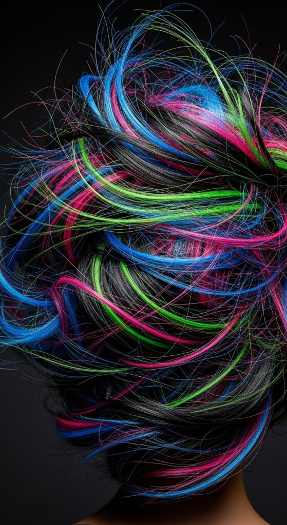 The glitchy glam hair trend relies on precise, disconnected pieces and hidden colors. Sadly, wind is its enemy. Those delicate, artfully placed pieces get scrambled instantly.