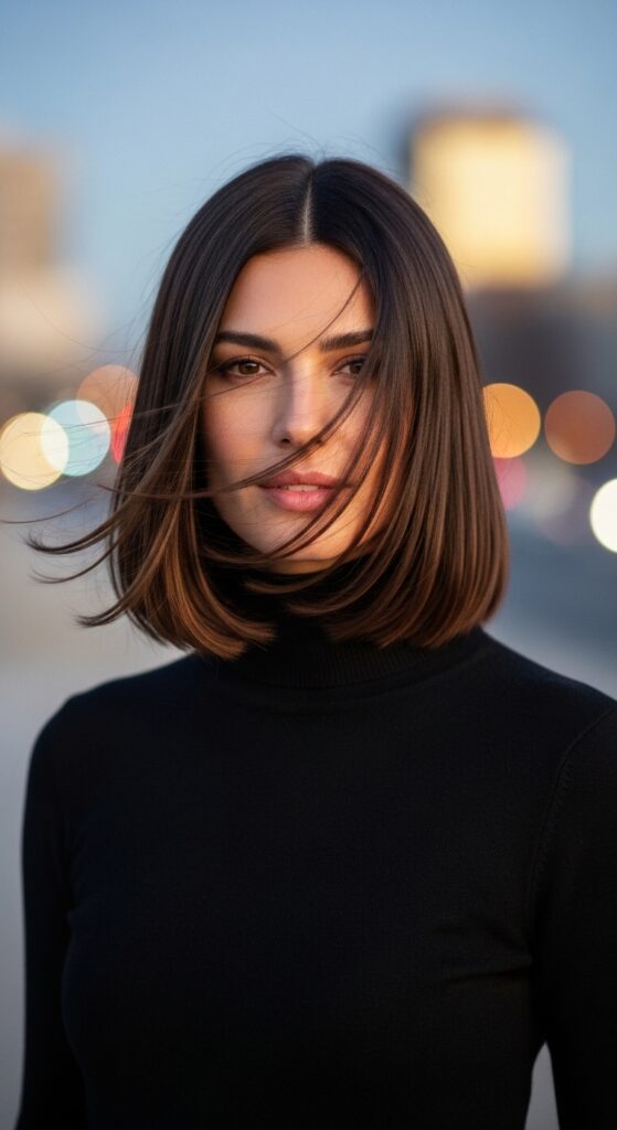 This was our undisputed winner. The length—just above the shoulders—has enough weight to stay down. The secret is keeping the baseline blunt and adding only long, subtle layers around the face.