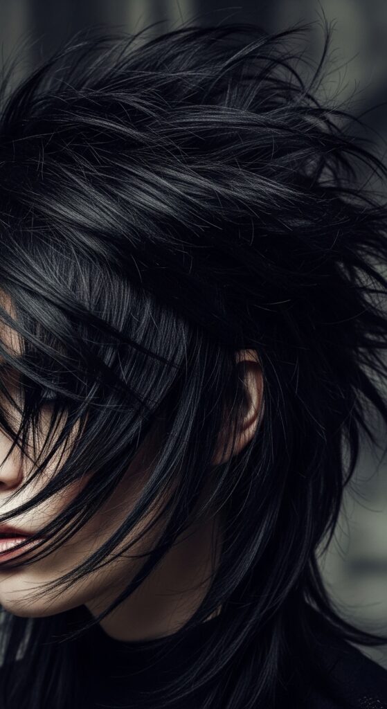 The shorter layers underneath give volume without being exposed to direct wind. The result? Wind just adds to the textured, piece-y look. It gets better, not worse. This is a core technique in many romantic goth hairstyles for that reason.