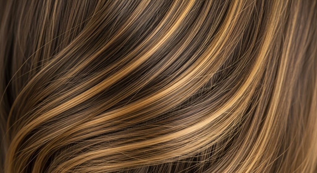 Soft, Feathered Edges: There are no hard lines or obvious “stripes” of color. The transition between the darker roots and lighter ends is soft, diffused, and feathered. The highlights themselves are fine and woven, often placed irregularly to avoid a patterned look.