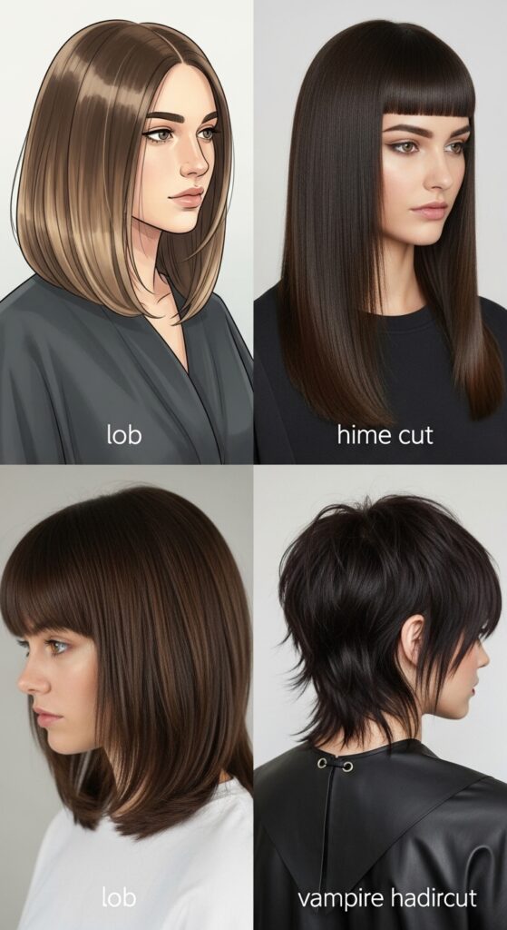 You might see trends like the hime cut (with its straight-across fringe and dramatic face-framing pieces) or the vampire haircut (a shaggy, textured mullet-lob hybrid). These are more specific, structured cuts.