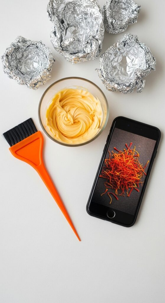 Say: “I’d love a dimensional, warm golden-copper melt. I want it to feel like a saffron spice gradient, starting a bit deeper at my roots and melting into a brighter, warming gold at the ends. I’m aiming for a quiet luxury feel.” This gives them a perfect blueprint.
