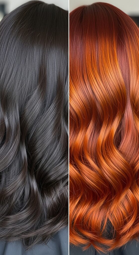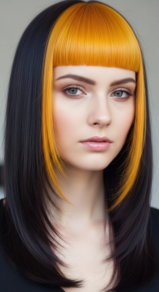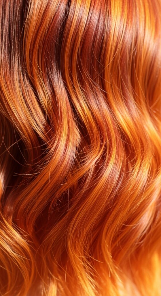 For a truly dramatic take, imagine this color on a hime cut. That’s the Japanese-inspired style with straight, blunt-cut front strands and longer back hair. The bold lines of the cut paired with the fiery color is a show-stopping combination.