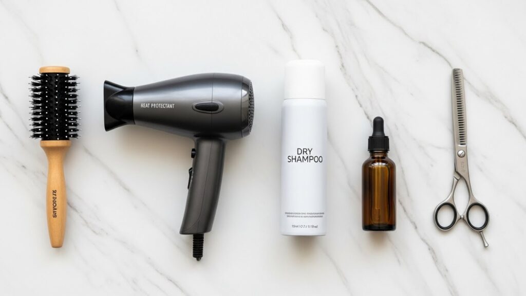 Committing to a lob with bangs requires a little know-how, but the upkeep is far simpler than you might think. The golden rule for bangs? You will become best friends with your blow-dryer and a round brush. For a sleek finish, blow-dry your bangs downward, rolling them under the brush. For a piecey, textured look, dry them side-to-side. A quick pass with a flat iron can perfect the shape, but always use a heat protectant.