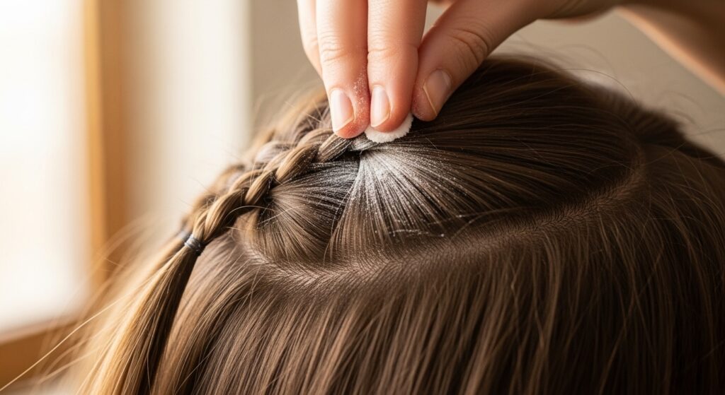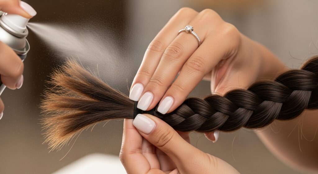 I always braid on second-day hair. If you just washed, use a light texturizing spray or a dry shampoo at your roots. For the lengths, a light-hold mousse or a tiny bit of styling cream works wonders to fight frizz and add hold.