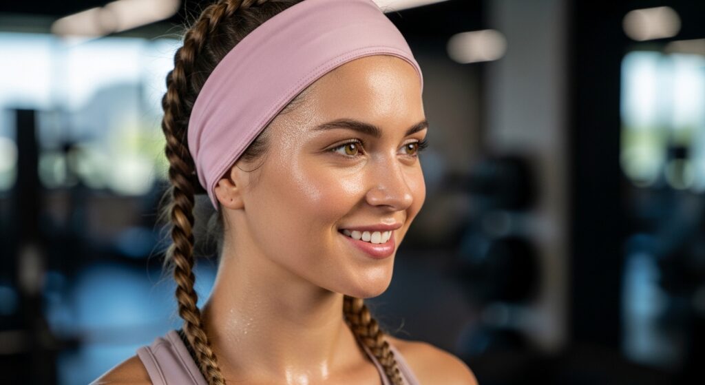 If the roots look flat, use a tiny bit of dry shampoo at the parts to soak up moisture and add volume back. The braids themselves should hold up beautifully through any sweat session.