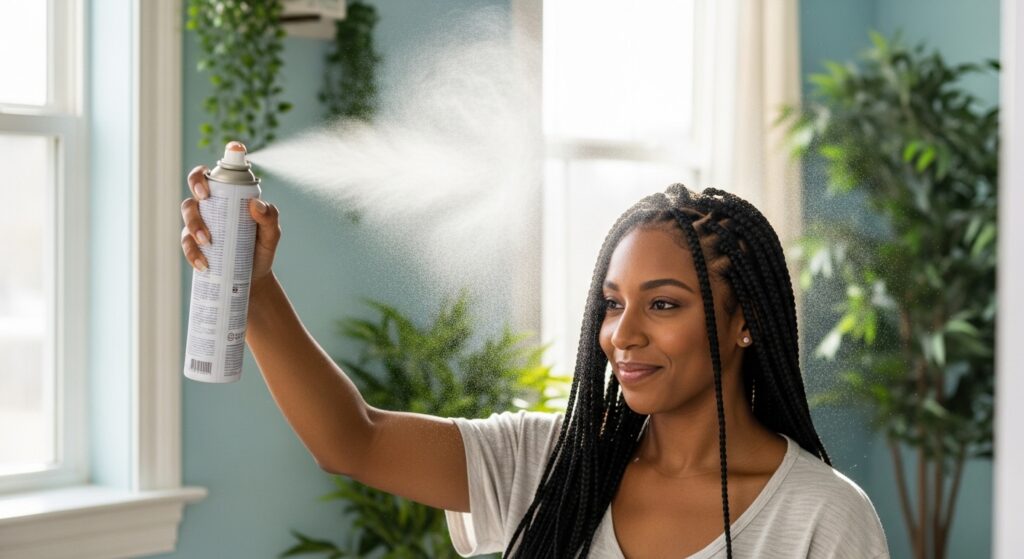 Don’t just spray and pray! Once all your braids are done, hold a strong-hold hairspray about 10 inches away. Lightly mist over the entire style. Let it dry for a second.