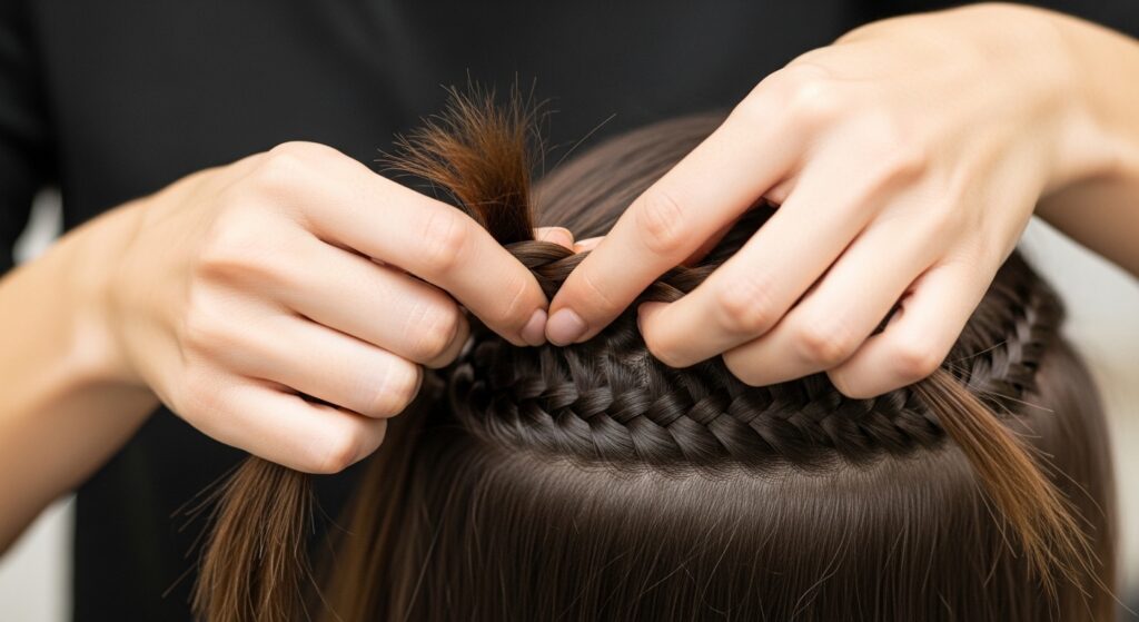 This is a common mistake. You need consistent tension—firm but not yanking. Pull each section snug as you add it, but keep the pressure even. If you pull too tight at the scalp, it gets painful and can cause breakage.