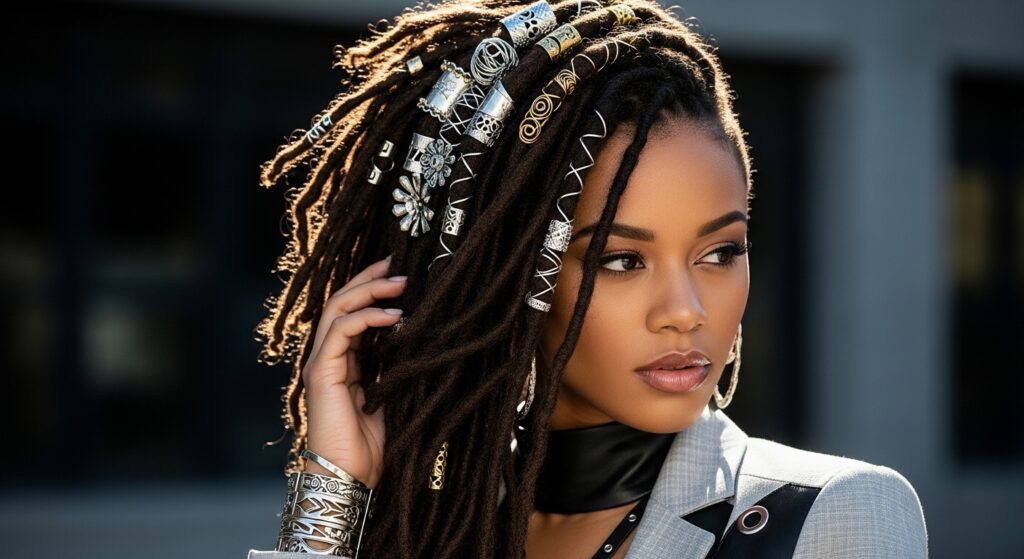 Who says you have to match? One of the biggest trends right now is mixing metals. Try pairing a cool sterling silver cuff with a warm brass one on adjacent locs. This creates a modern, layered look that feels very “of the moment.”