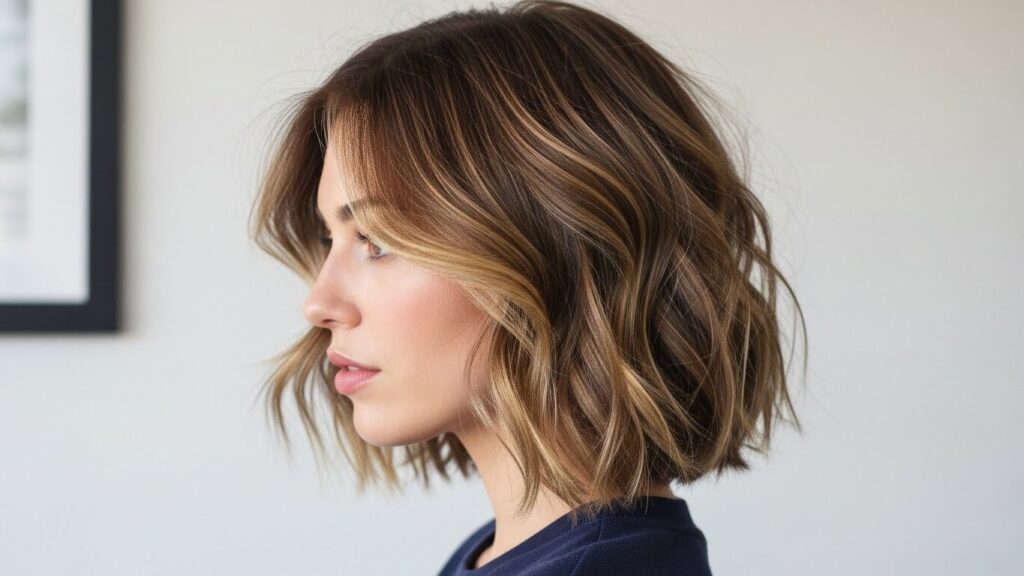The result is a piecey, lived-in look that appears artfully disheveled. Run your fingers through it, flip your part, or tuck one side behind your ear for an instant style refresh. This look works beautifully on straight, wavy, and slightly curly hair, and it requires almost zero daily maintenance once the initial style is set.