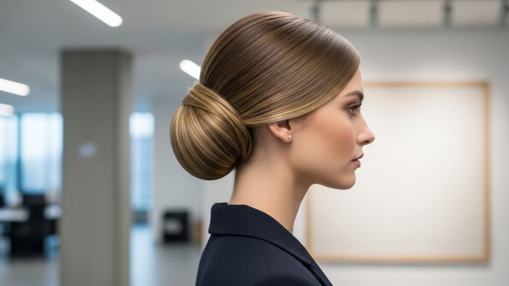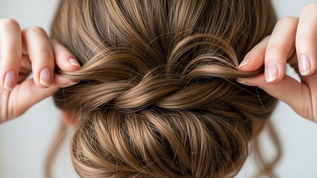 This is the ultimate paradox: a style that looks sleek and sophisticated but is deceptively simple. Start by brushing your hair into a low ponytail at the nape of your neck. Instead of twisting it tightly, create a loose, folded knot. Wrap the length of your ponytail around the base, but don’t pull the ends all the way through. Secure with a second elastic or some bobby pins, but keep the shape soft.