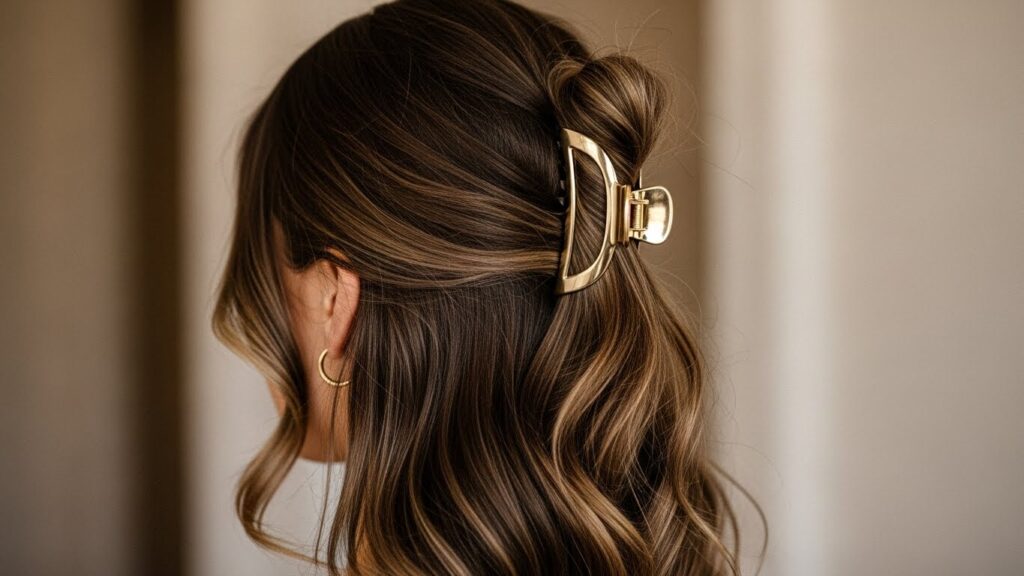 Sometimes, all a simple style needs is one great accessory. The half-up hairstyle gets a major upgrade when you add a dainty clip, a silk scarf, or a stylish barrette. Simply take a section of hair from your crown and the sides (above your ears), gather it at the back, and secure it with your chosen accessory. Let the rest of your hair flow freely.