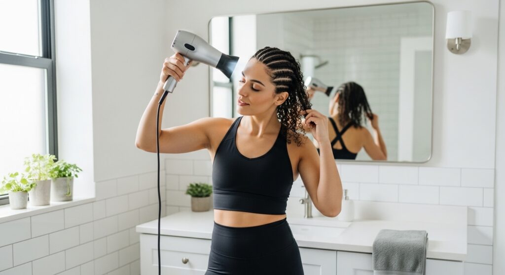 Don’t just let it air dry. Use your blow dryer on the cool setting. Gently lift sections of your braids and aim the airflow directly at your roots for a few minutes.