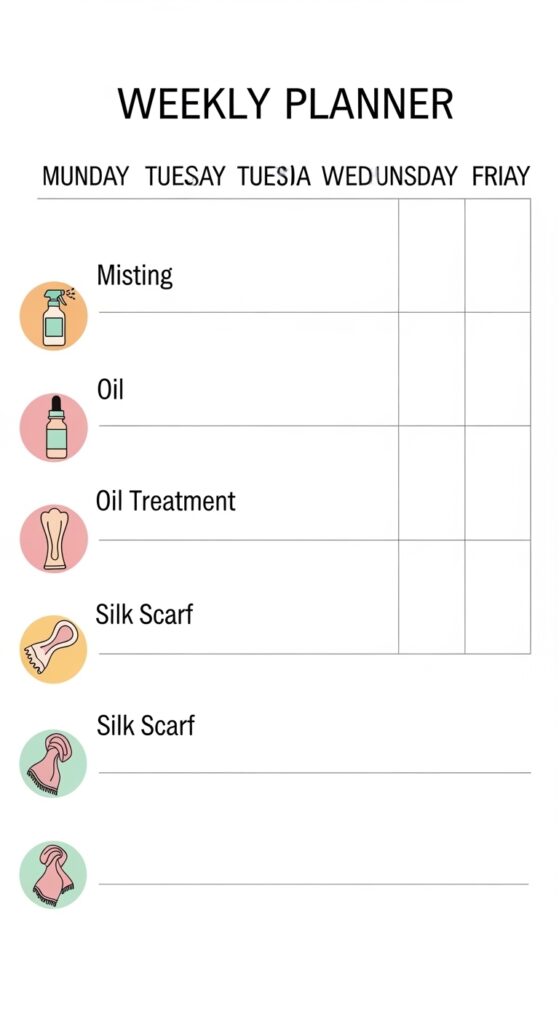 For travel, pack a small bottle of your oil blend and a travel-sized spray bottle. A portable silk scarf is a must. A quick treatment when you land can combat dry airplane air.