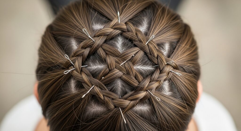 If you can do Dutch braids (braiding under), this is a game-changer. Create two Dutch braids starting at your temples going back. Secure the ends, then tuck and pin them under at the nape of your neck to form a hidden bun.