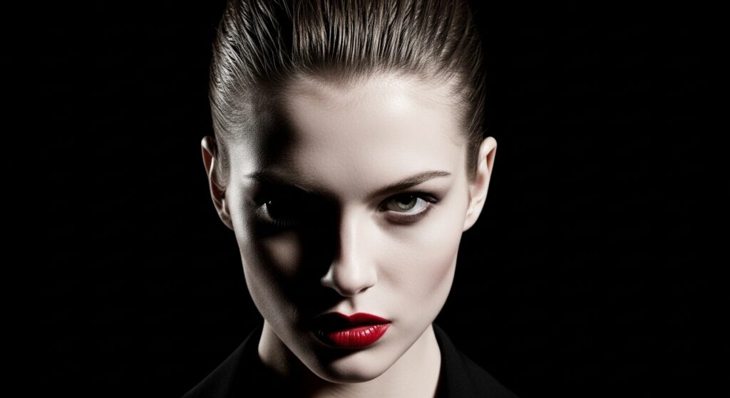 It looks intricate and holds all day, perfect for a busy night out. It has a cool, edgy vibe that nods to vampire haircut aesthetics.