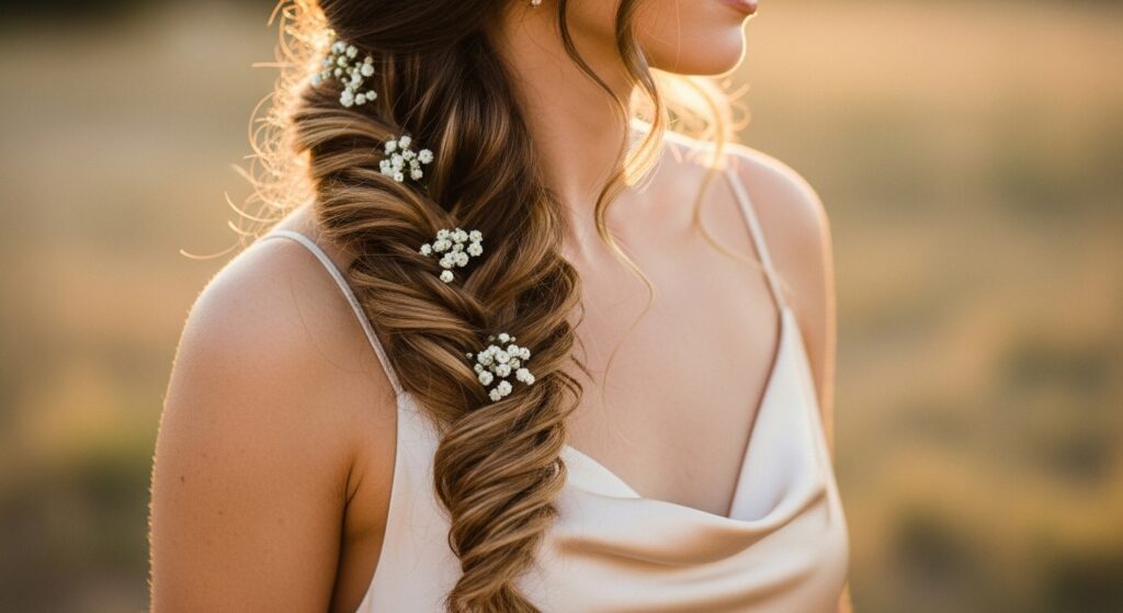 You don’t need a full head of braids. Create a single waterfall braid along your hairline, from one side to the other. Secure the end behind your ear, and let the rest of your hair flow down or be put up in a simple clip.