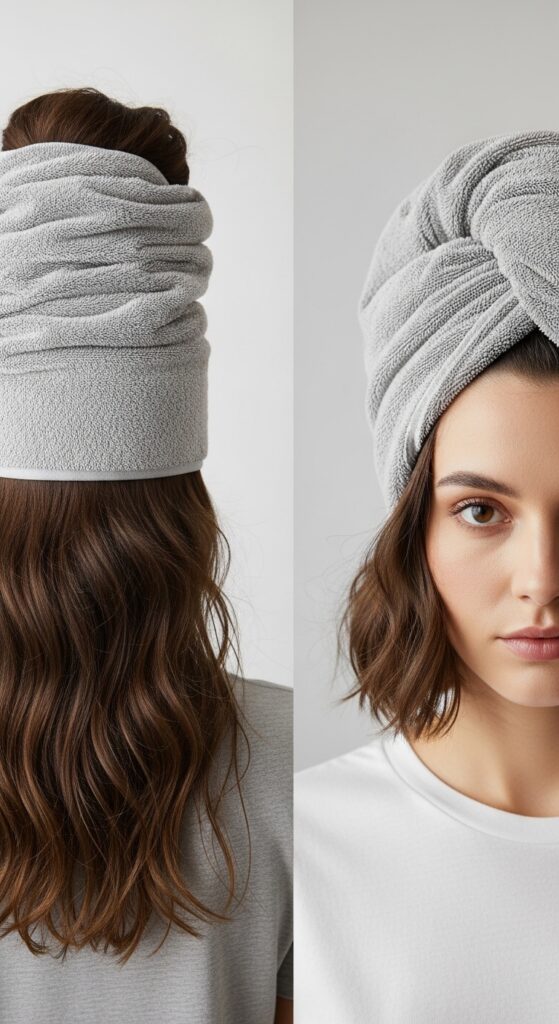 Let’s troubleshoot so you get it right the first time. First mistake: using a terry cloth towel. This causes instant frizz. Second: wrapping too tightly.