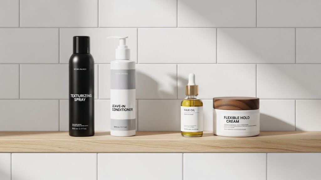 For Texture and Hold: A sea salt spray or a texturizing mist is a game-changer. Spritzed on damp or dry hair, it creates a lived-in, beachy feel with minimal effort. A flexible-hold cream or mousse can define waves, tame frizz, and add body without crunch or stiffness.