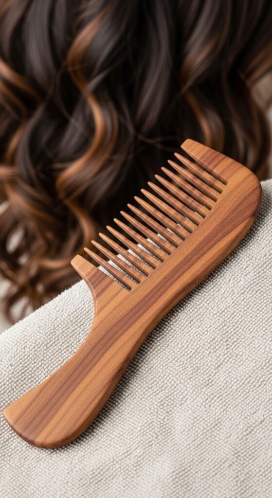 Sometimes, the simplest tools are the best. A wide-tooth comb, especially one made of smooth wood or sandalwood, is a classic for a reason. The wide gaps between teeth prevent snagging and minimize breakage on wet hair.