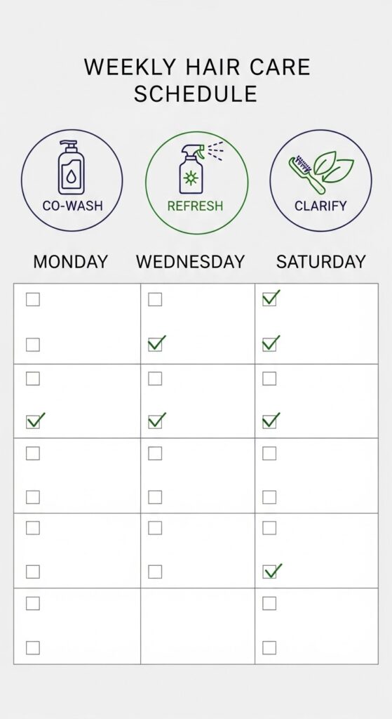 - Day 3-4: Refresh with a water rinse or a light conditioner on ends only.