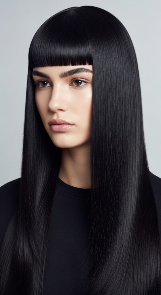 The hime cut, with its dramatic blunt fringe and long sides, is a statement. That statement is “sharp, healthy, and intentional.” Dryness or frizz dulls this dramatic look instantly.