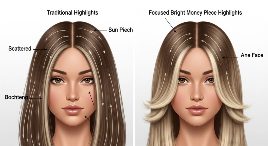 At its core, the money piece is a concentrated highlight technique focused exclusively on the front sections of your hair. Think of the strands that naturally fall around your face—from your temples down to your chin. These select pieces are lightened (often several shades brighter than the rest of your hair) to create a bright, face-framing effect. The name says it all: it’s the piece you invest in, the detail that pulls your entire look together, making it look “expensive.”