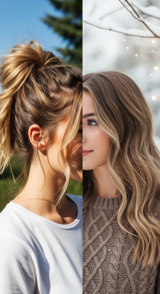 In winter, combat static and dryness with a light hair oil on just the ends. You can also style it with more defined curls or waves for a cozy, romantic feel.