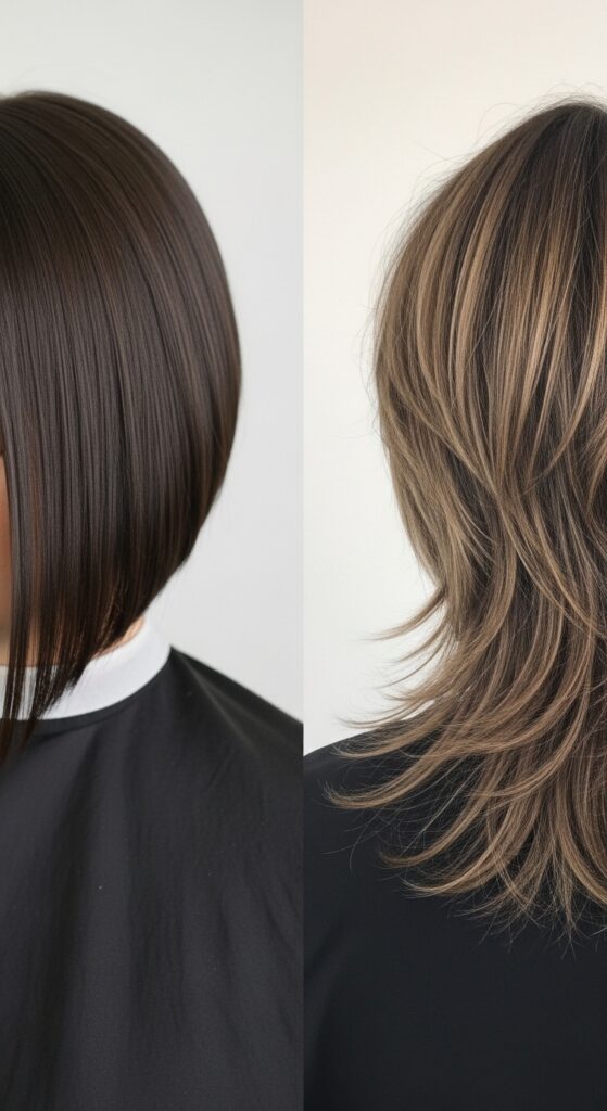 The lob is a geometric cut; the mullet 15 is a textured cut. Both are professional, but the mullet has more of a rebellious heart.