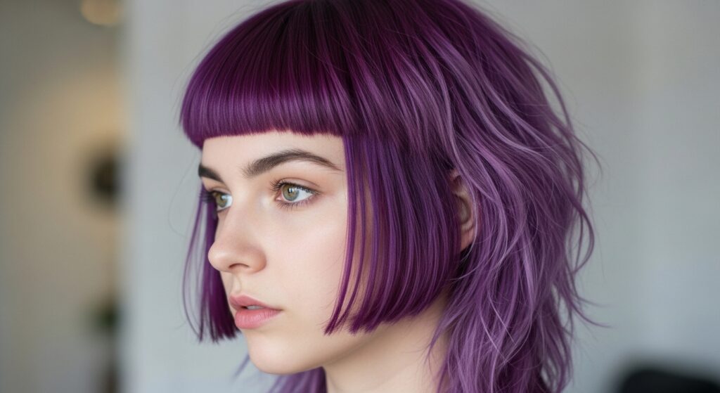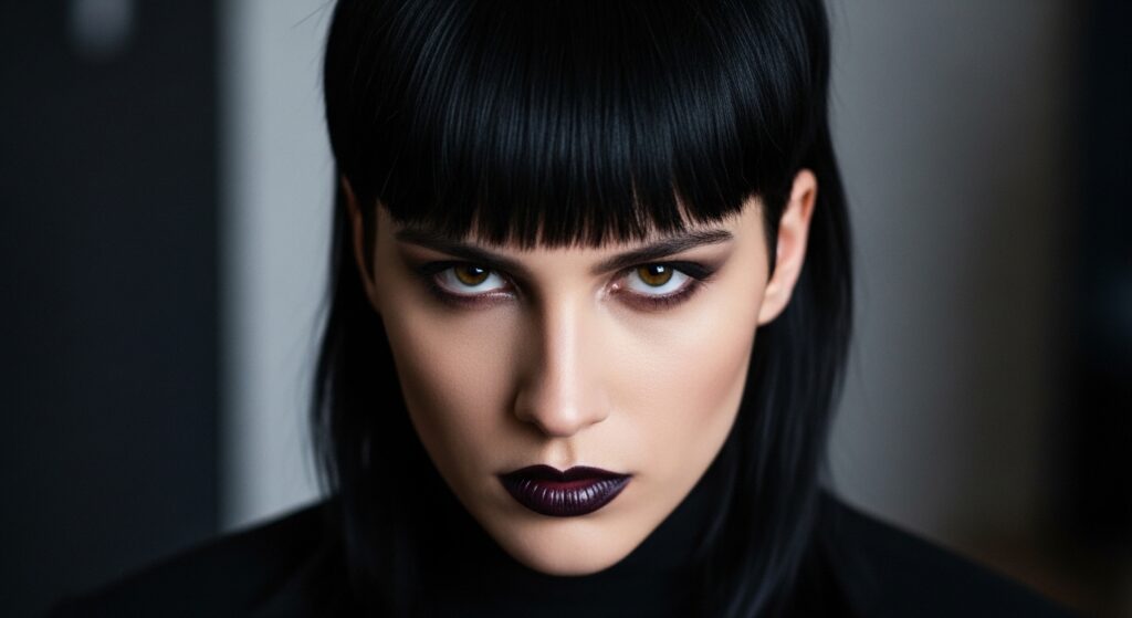 The vampire haircut is basically the mullet’s dramatic cousin. It often features very sharp, graphic bangs (like a curtain bang or even a micro-fringe) paired with the mullet’s signature short-front, long-back shape. It’s bold, dark, and mysterious.