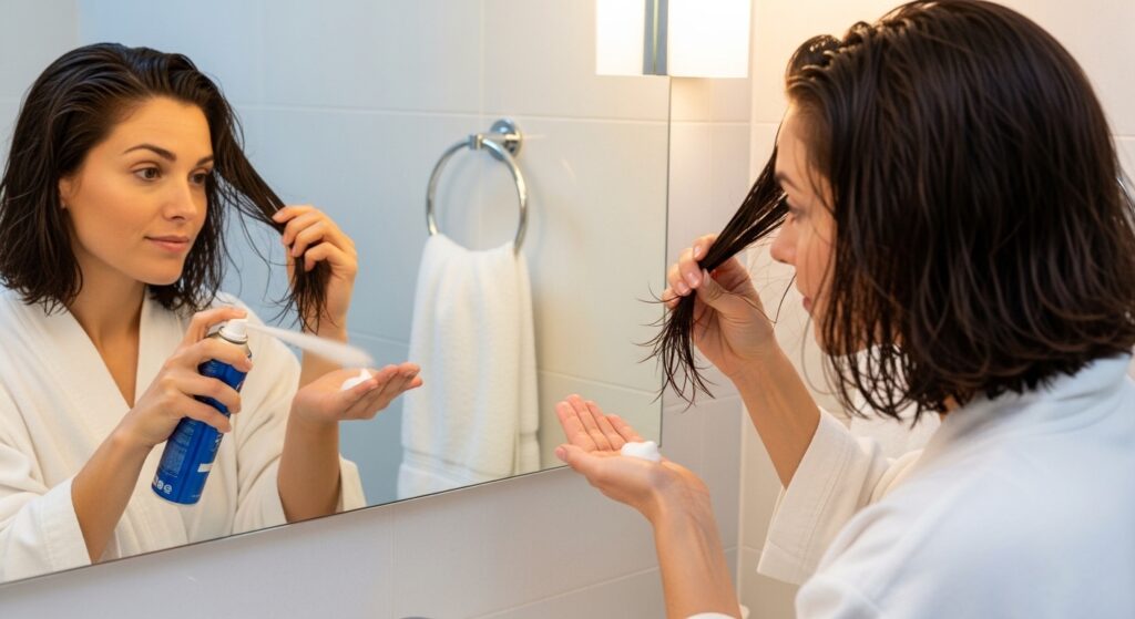 Then, you need a product to hold the shape. My holy grail is a lightweight mousse or a curl-enhancing cream. Apply it evenly from mid-lengths to ends. This gives the hair something to “set” onto and fights frizz, so you wake up with smooth, defined curls, not a fuzzy mess.