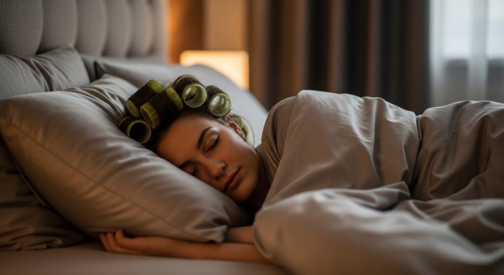 You can also try a “pineapple” method: gather all your rolled hair into a very loose, high ponytail on top of your head before lying down. This keeps most of the rollers off the pillow. You’ll be surprised how quickly you get used to it.