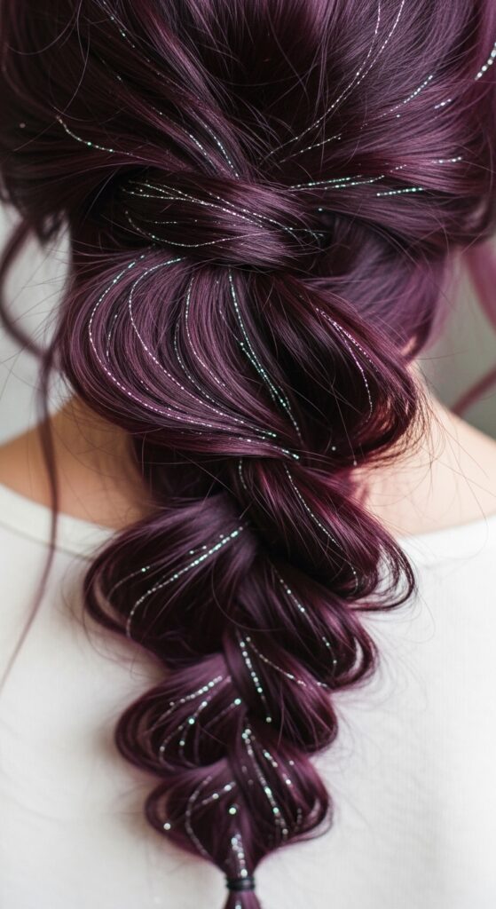 If you have dark hair, a violet or deep blue sparkle can create a stunning vampire haircut effect—mysterious and rich. Blondes can pull off almost any shade, but pearl is gorgeous for an old money hair twist.